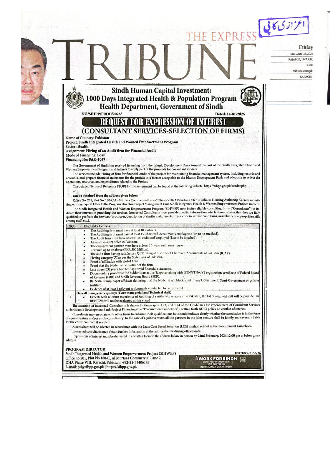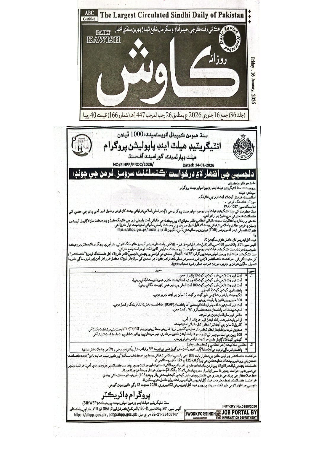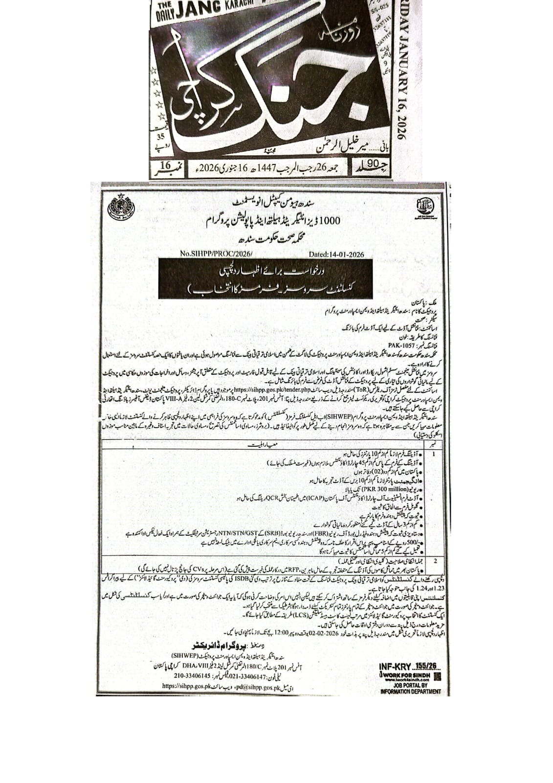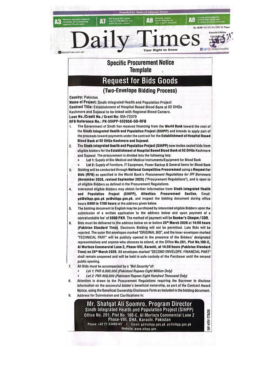 Sindh Integrated Health & Population Program (SIHPP), Government of Sindh